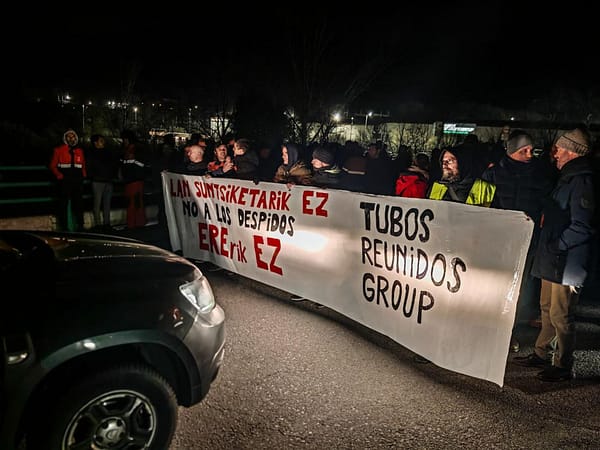 La respuesta inminente de la plantilla han sido paros totales y parciales, además de concentraciones frente al Gobierno vasco a quien piden intervención después de haber inyectado dinero público a la compañía.Tomado de "EL SALTO" Laura L. Ruiz • 13 de febrero a las 6:02 Los trabajadores de Tubos Reunidos han iniciado una campaña de paros totales y parciales para rechazar el ERE que afecta a 301 puestos de trabajo. Sindicatos como ELA, ESK y...